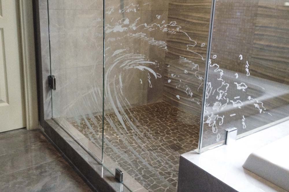 Fusion Glassworks Inc has long been a leader in glass etching and sand carving. All glass can be sandblasted. Common applications include showers, pantry doors, cabinet glass and wall partitions. Custom designs are the “normal” for us. Or choose designs from our years of catalogued designs. Our latest equipment is an automatic sand blasting machine that brings more consistency and value to your commission. Give us a call, or drop by the shop to get started on your etched glass design.